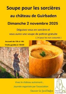A 13h30 visite guidée du château par un guide et entre 10h et 15h visite guidée libre par QRcode à travers tout le site… Nous espérons vous retrouver nombreux pour cette soupe ensorcelante.