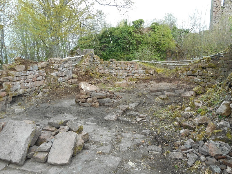 La saison de débroussaillage et de rangement des coupes s’est achevé en mars et voilà que nous attaquons notre toute première saison de maçonnerie.  En accord avec la DRAC, l’architecte du patrimoine Mathias HEISSLER qui nous supervise et le propriétaire, nous avons l’aval pour consolider les murs des communs à gauche du palas.