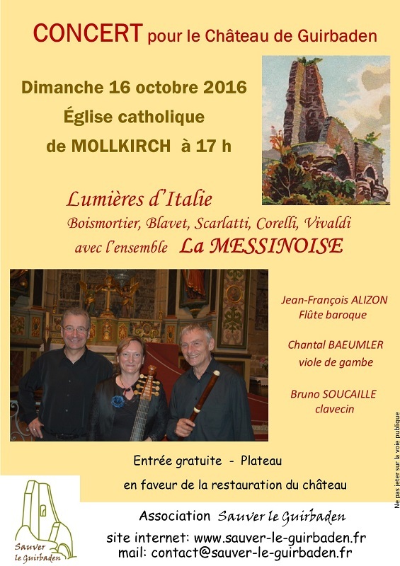Dimanche 16 octobre 2016, l’ensemble La Messinoise a donné un concert à l’Eglise de Mollkirch en faveur de la restauration du château…