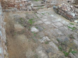 Dans le but de préserver ces dalles en grès des intempéries et du temps… les Monuments Historiques nous ont demandé de les recouvrir à nouveau.