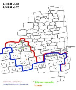 Lorsqu’on veut restaurer un mur, la première des choses à faire est de l’étudier au préalable pour comprendre comment il a été fait et noter tous les indices le concernant avant de perdre des infos lors de la restauration…. C’est ce qu’on appelle : l’archéologie du bâti.