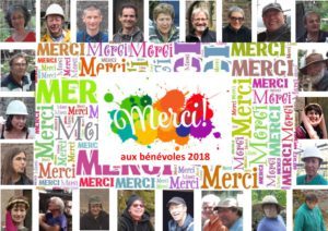 5811 heures de bénévolat sur le site en 2018 ( 4144 h en 2017) 115 jours de présence ( 103 jours de présence en 2017 ) 885 journées/homme (592 journées/homme en 2017) 87 personnes différentes sur les chantiers ( 58 en 2017 ) dont 14 Burckert les 5 et 12 mai dont 7 Caisse d’Epargne le 4 juin dont 20 Lilly le 27 septembre Actuellement un noyau dur de 20 pers régulières. En 2018 il y avait 129 membres dans l’association ( 79 en 2017 )
