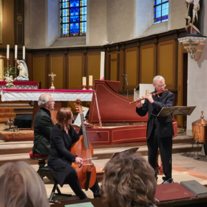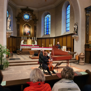 Le dimanche 6 nous avons eu le grand plaisir d’accueillir pour la deuxième fois l’ensemble La Messinoise qui nous a fait l’immense plaisir de jouer pour nous à l’église de Mollkirch. Les musiciens Chantal BAEUMLER ( viole de gambe) Jean-François ALIZON ( flûtes ) et Bruno SOUCAILLE (clavecin) ont ravi nos oreilles en jouant des oeuvres de Abel, Benda, Carl Emanuel Bach, Kirnberger pour un programme intitulé: les maîtres de Mozart. Les dons ont été entièrement réservés à la restauration du château.
