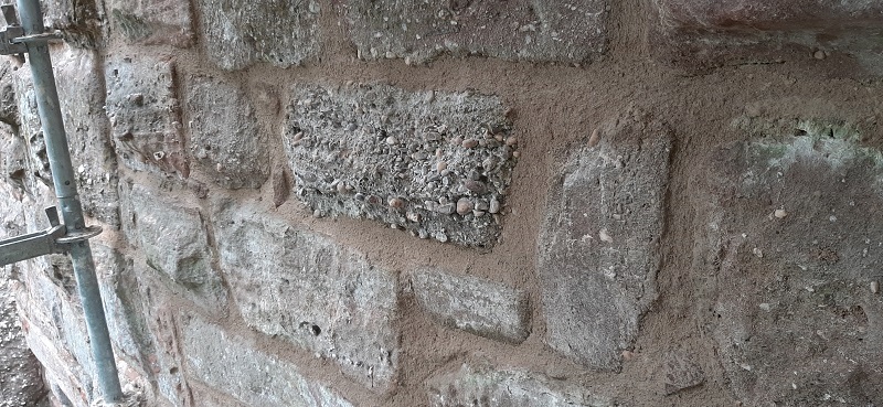 Mais malgré ces activités extra chantier…. nous avons continué a bien bosser sur le site… La maçonnerie du mur de la poterne Est s’est achevé avec la réalisation des joints côté externe…