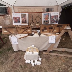 et un stand “bâtisseurs” avec différents outils du tailleur de pierre qui auront permis  aux bénévoles de donner des explications aux visiteurs curieux…