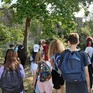 Costume, masque et micro avec amplificateur de voix…. drôle de mélange pour la guide  !!!