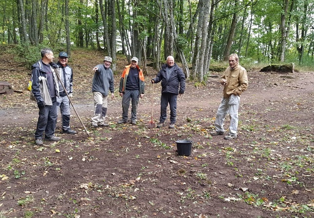 L’emplacement du panneau d’information a été défini et les hommes ont creusé les trous pour pouvoir le fixer.