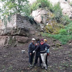 La présidente mouille son maillot … avec une première: nettoyage du mur du pont levis…encordée !
