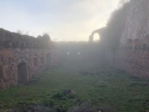 Petit tour au château tout de même en ce 28 novembre pour voir si tout allait bien là haut !   La brume semble mettre le château en sommeil… sauf les sangliers qui s’en donnent à cœur joie  dans tous les coins !