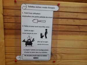 La présidente veille… en installant le papier toilette … ben oui, c’est bien beau les feuilles de bouillon blanc… grandes et douces … mais il n’y en a pas toute l’année !!!                        Elle n’oublie pas non plus les consignes …